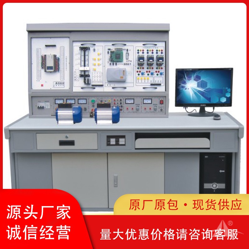 PLC 部分集可编程逻辑控制器、通信编辑器、编程软件、工控组态软件、仿真教学软件、模拟控制实训挂箱、实物等于一体,可直观地进行 PLC 的基本指令训练,多个应用广泛的 PLC 实际应用模拟实验和实物控制实训,也为高层次的设计开发实验实训提供良好的条件。为了结合教学要求,设计过程中参考了国内多种教材,从中精选出*具典型性的实训实验项目,配备三相鼠笼异步电机及继电器,能完成多个电气控制项目训练。单片机开发应用部分功能强大,实训内容丰富,可完成单片机接口扩展、数据采集、数据显示、键盘控制、定时器、打印机接口等众多项目训练。